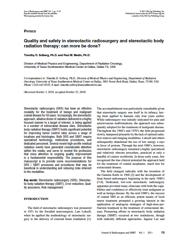 Quality and safety in stereotactic radiosurgery and stereotactic body radiation therapy: Can more be done?