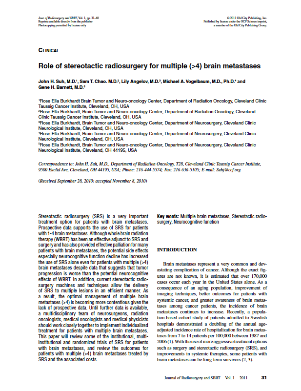 John H. Suh, Sam T. Chao, Lily Angelov, Michael A. Vogelbaum, and Gene H. Barnett